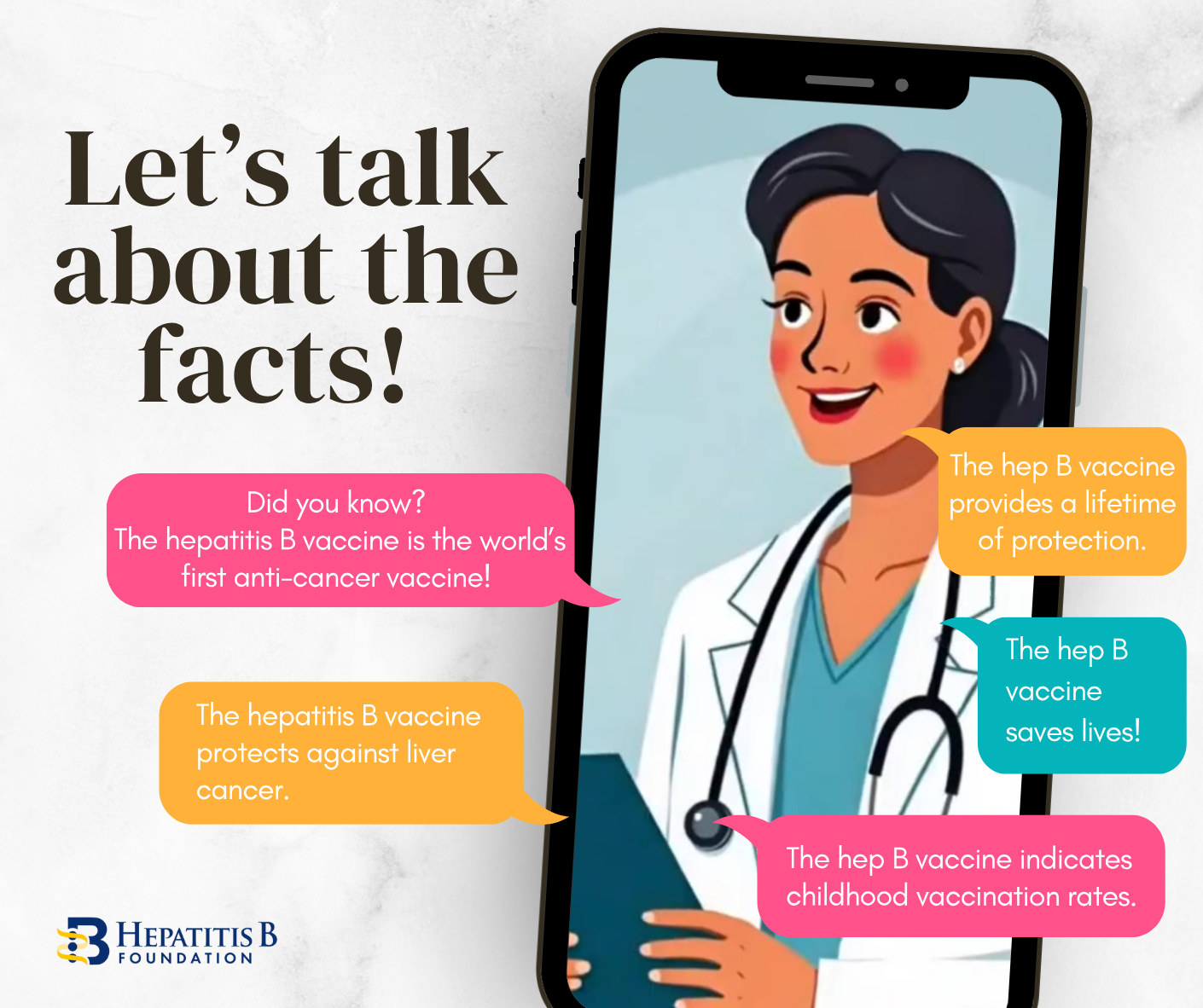 We've created talking points to highlight the critical importance of the hepatitis B vaccine, now more vital than ever. These facts can help educate decision-makers, legislators, and parents about its role in protecting infants' health. Additionally, to support efforts in spreading awareness about the necessity of the hepatitis B birth dose vaccination, we’ve included fact sheets in this media toolkit. These resources are designed to educate and empower communities, healthcare providers and advocates with clear, evidence-based information about the importance of early vaccination. By sharing these fact sheets, you can help raise awareness of this lifesaving vaccine, encourage timely vaccination, and contribute to a healthier, hepatitis B-free future.