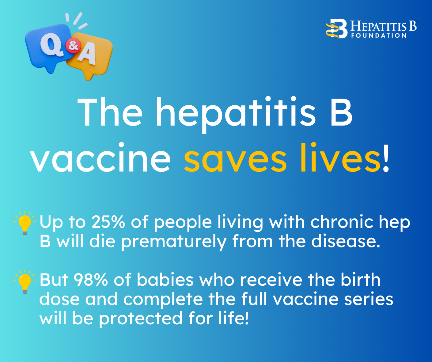 Vaccines, including the hepatitis B vaccine, are held to the highest safety standards and remain one of the most effective tools in protecting public health. As we move forward, the Hepatitis B Foundation is committed to providing reliable, evidence-based information and advocating for universal access to this lifesaving vaccine.